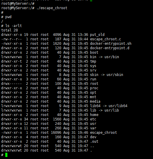 -rwxr-xr-x 1 0 0 16096 Aug 31 15:47 escape_chroot