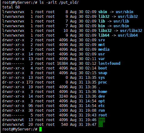 drwxr-xr-x 19 0 0 4096 Aug 31 13:36 put_old