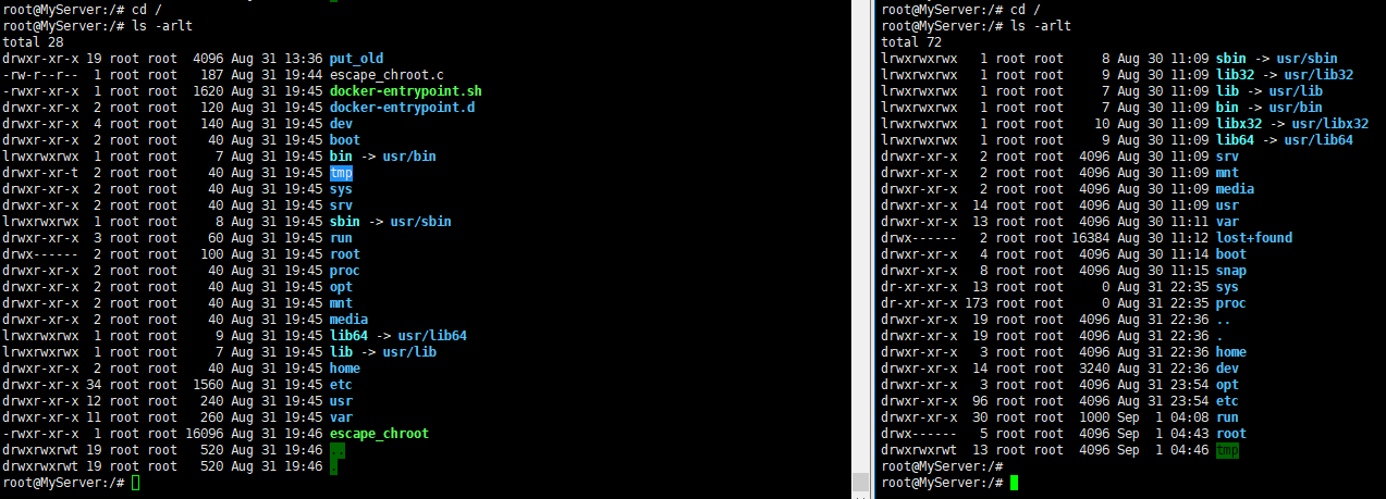 root@MyServer:/# ls -rlt /tmp/fake_root_dir/