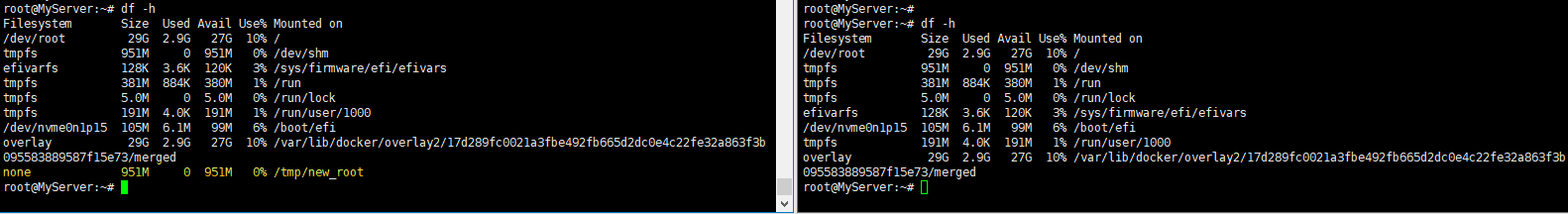 root@MyServer:~# mount -t tmpfs none /tmp/new_root