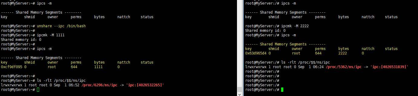 nobody@MyServer:~$ unshare --ipc /bin/bash