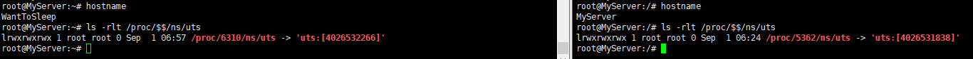root@MyServer:~# ls -rlt /proc/$$/ns